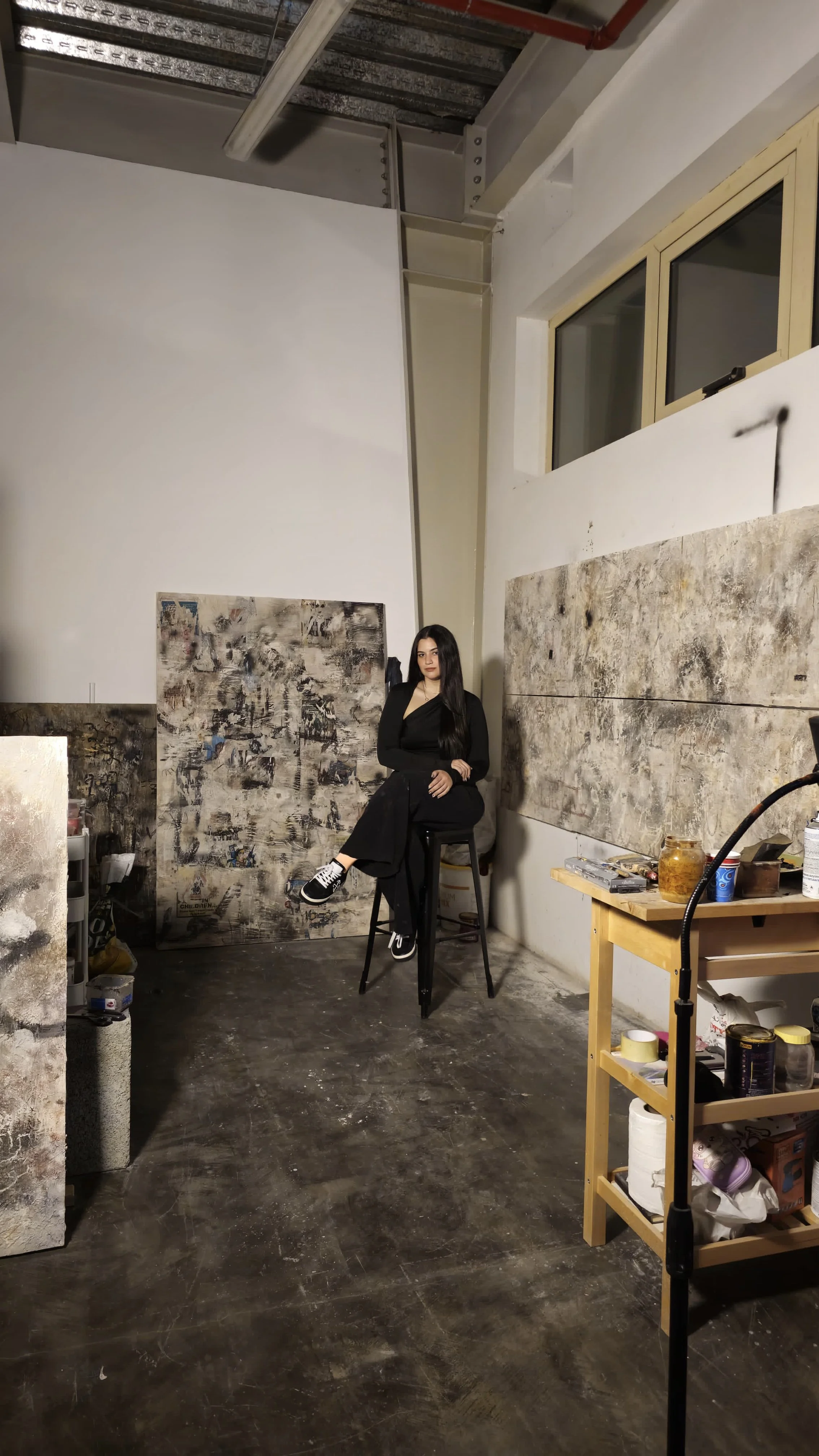Salma Dib (b. Damascus, 2000) is a Palestinian interdisciplinary artist whose practice spans painting, sculpture, and neon signage. Her work addresses the complexities of the diaspora experience and the realities of living through displacement, using symbolic abstractions to explore themes such as anonymity and the sense of being without a home. As the granddaughter of Palestinian refugees, her art reflects on the generational trauma passed down through wars and conflicts.